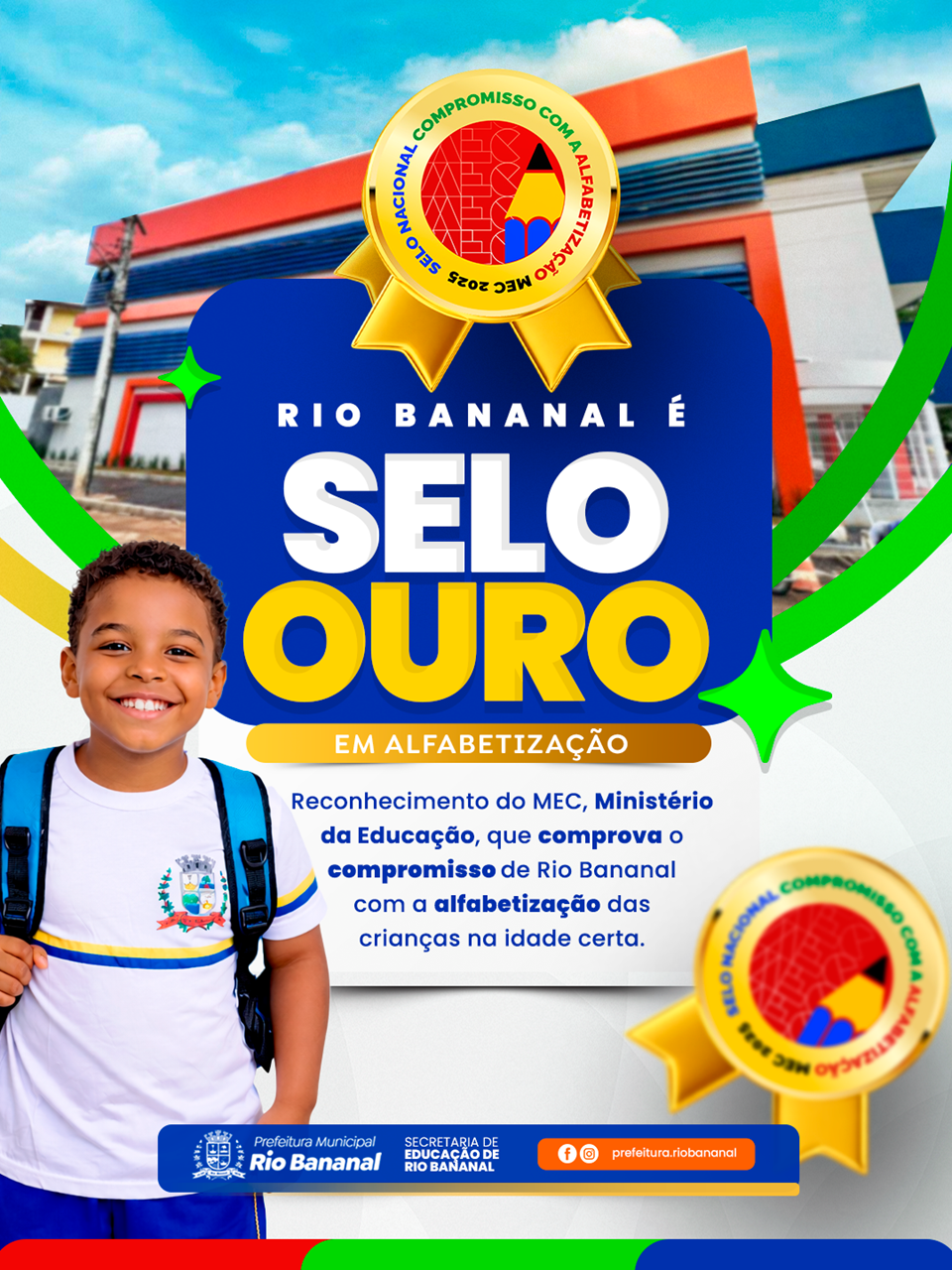 O selo é concedido às redes de ensino que demonstram avanços concretos na aprendizagem, além da adoção de programas e estratégias eficazes para assegurar que os estudantes sejam alfabetizados na idade adequada. A conquista reafirma o compromisso de Rio Bananal com uma educação pública de qualidade e com foco nos resultados.