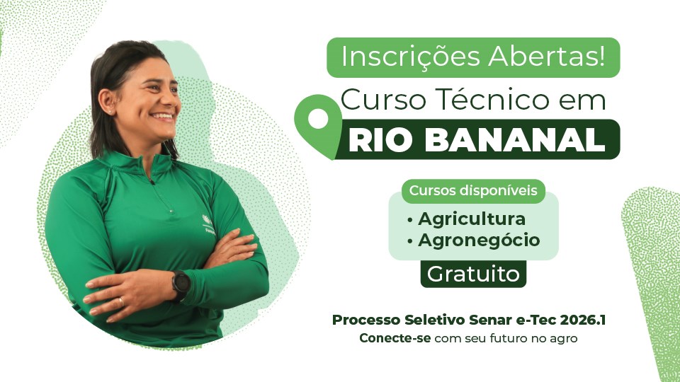 No polo de Rio Bananal, estão abertas as inscrições para os cursos de Agricultura e Agronegócio. O primeiro é voltado à qualificação de produtores no sistema de produção, mecanização e planejamento agrícola. Já o curso de Agronegócio prepara profissionais para atuar no planejamento e controle de processos de produção animal, vegetal e agroindustrial.